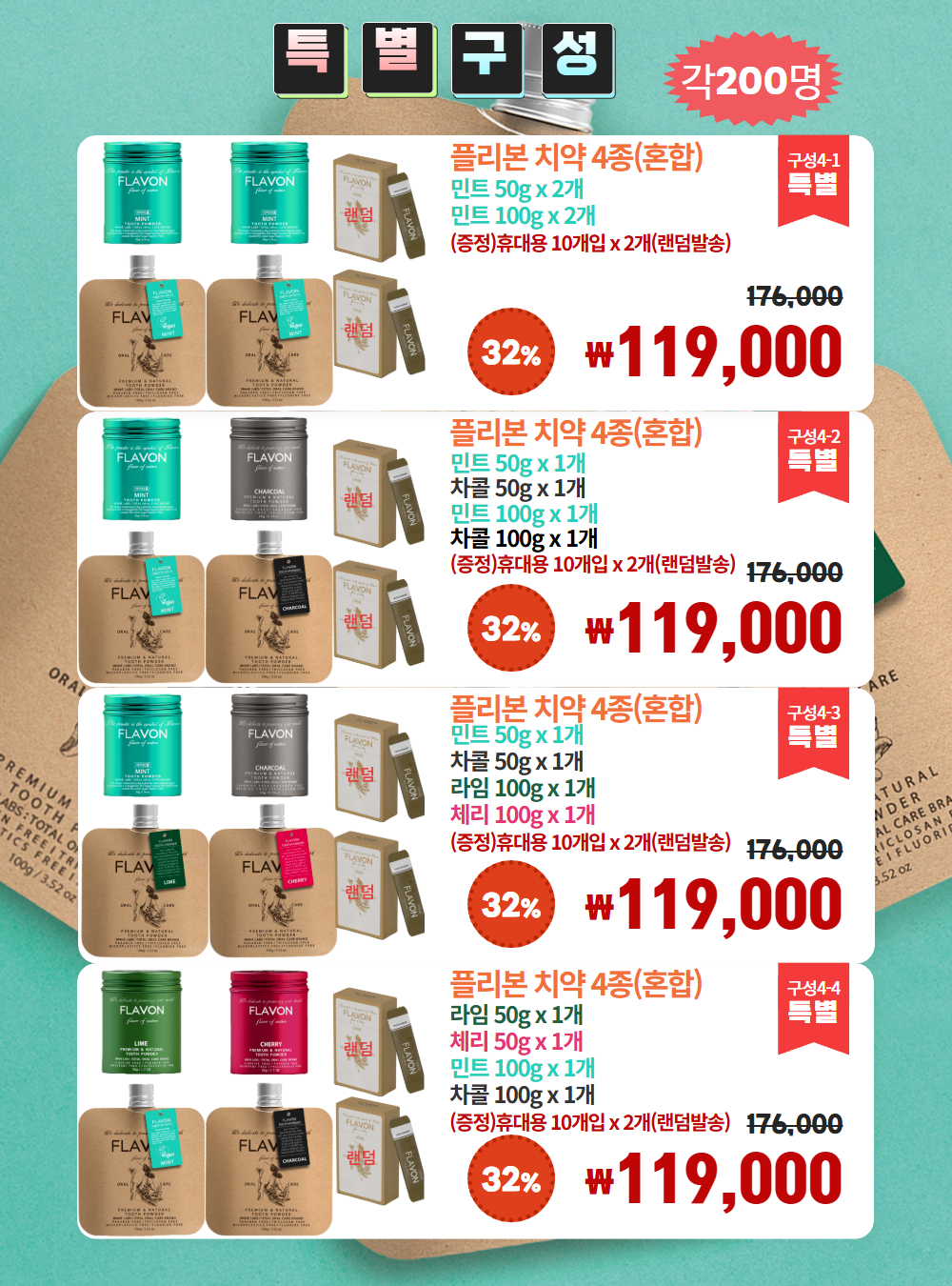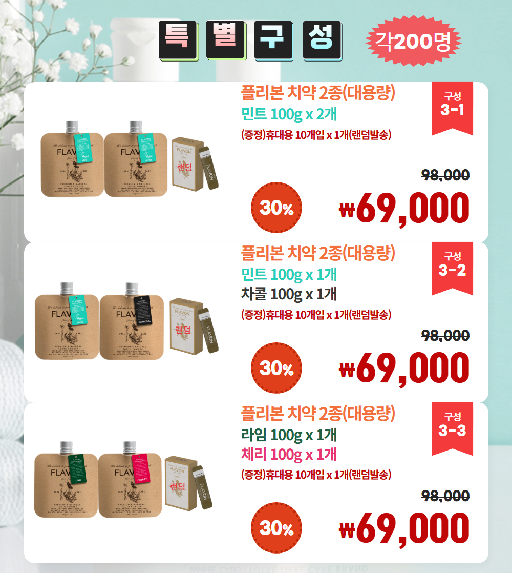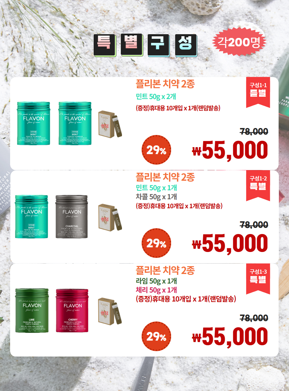 1,사용전 용기를 가볍게 3~4번 흔들어주세요(천연의 향과 맛이 더욱 풍부해집니다.) 2.내장 되어 있는 스푼을 사용하여 한스푼( 0.3g) 떠서 혀에 올려주세요. 3.기분좋은 양치를 시작하세요. TIP:천연성분이 완벽하게 용해 되는 플라본을 가글로도 사용해 보세요.