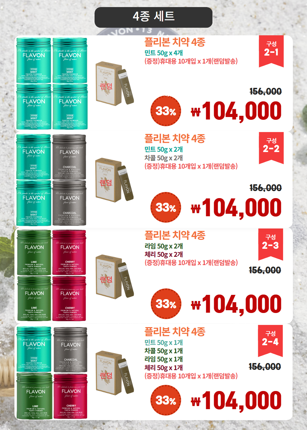 기타첨가제: 라우릴황산나트륨, L-멘톨, 비타민C, D-소비톨, D-소비톨액, 자일리톨, 잔탄검, 탄산수소나트륨, 향료, 효소처리스테비아, 울금엑스
