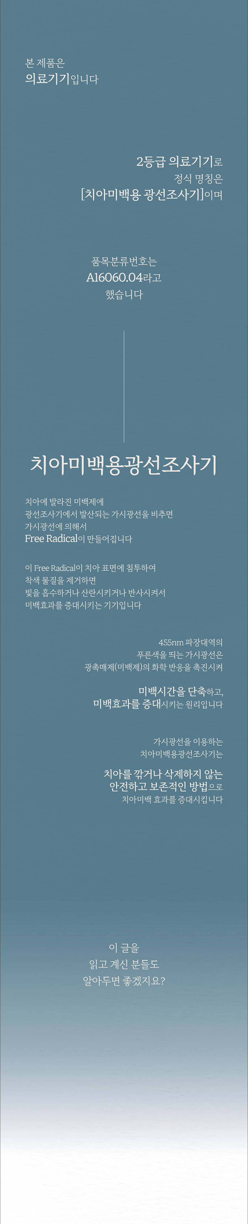 3. 미백후 2시간 동안은 음식물 섭취를 참아주세요.