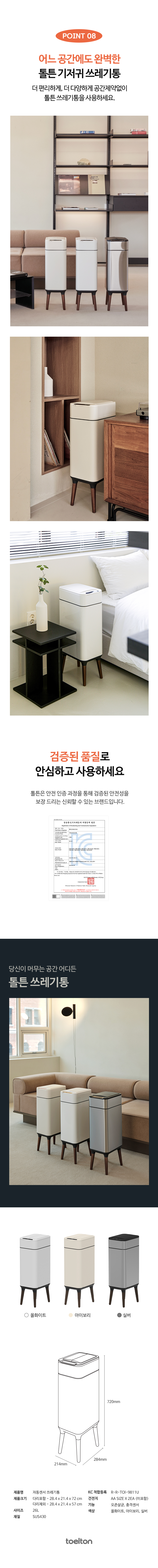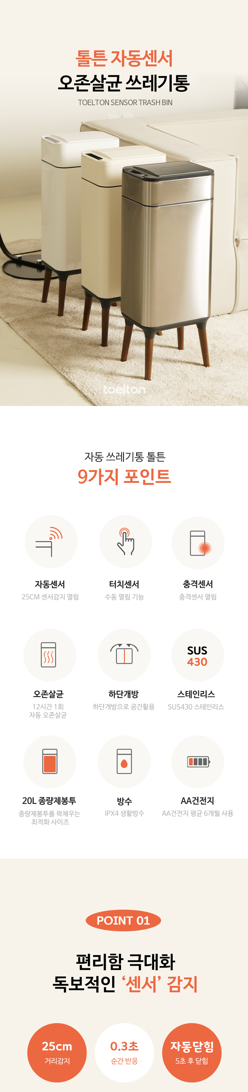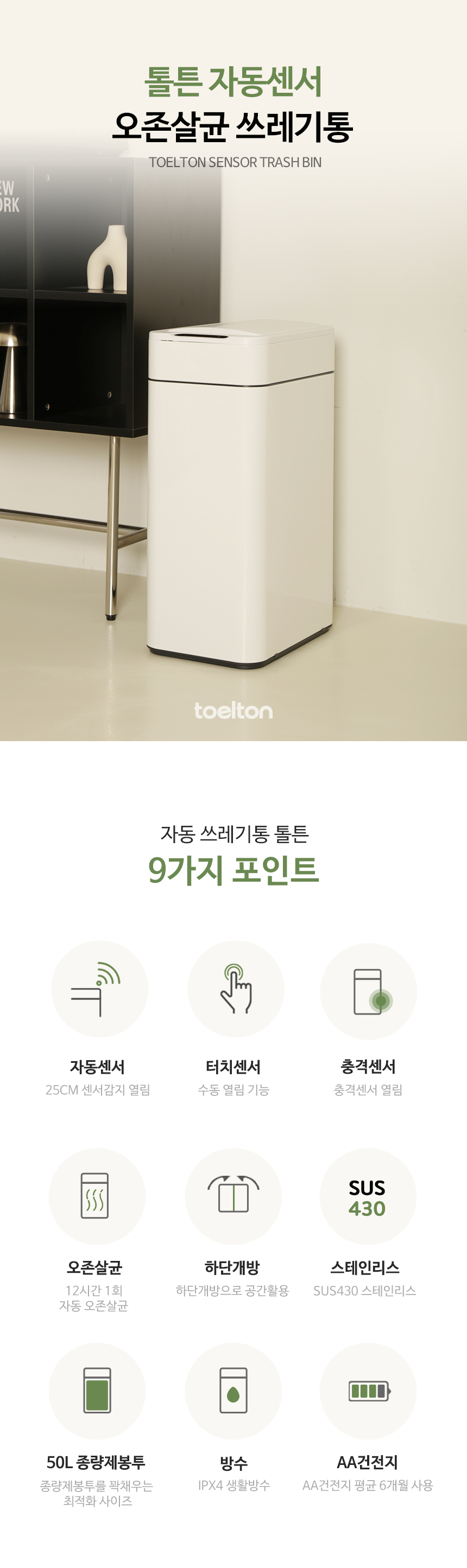 톨튼 자동센서 오존살균 쓰레기통
